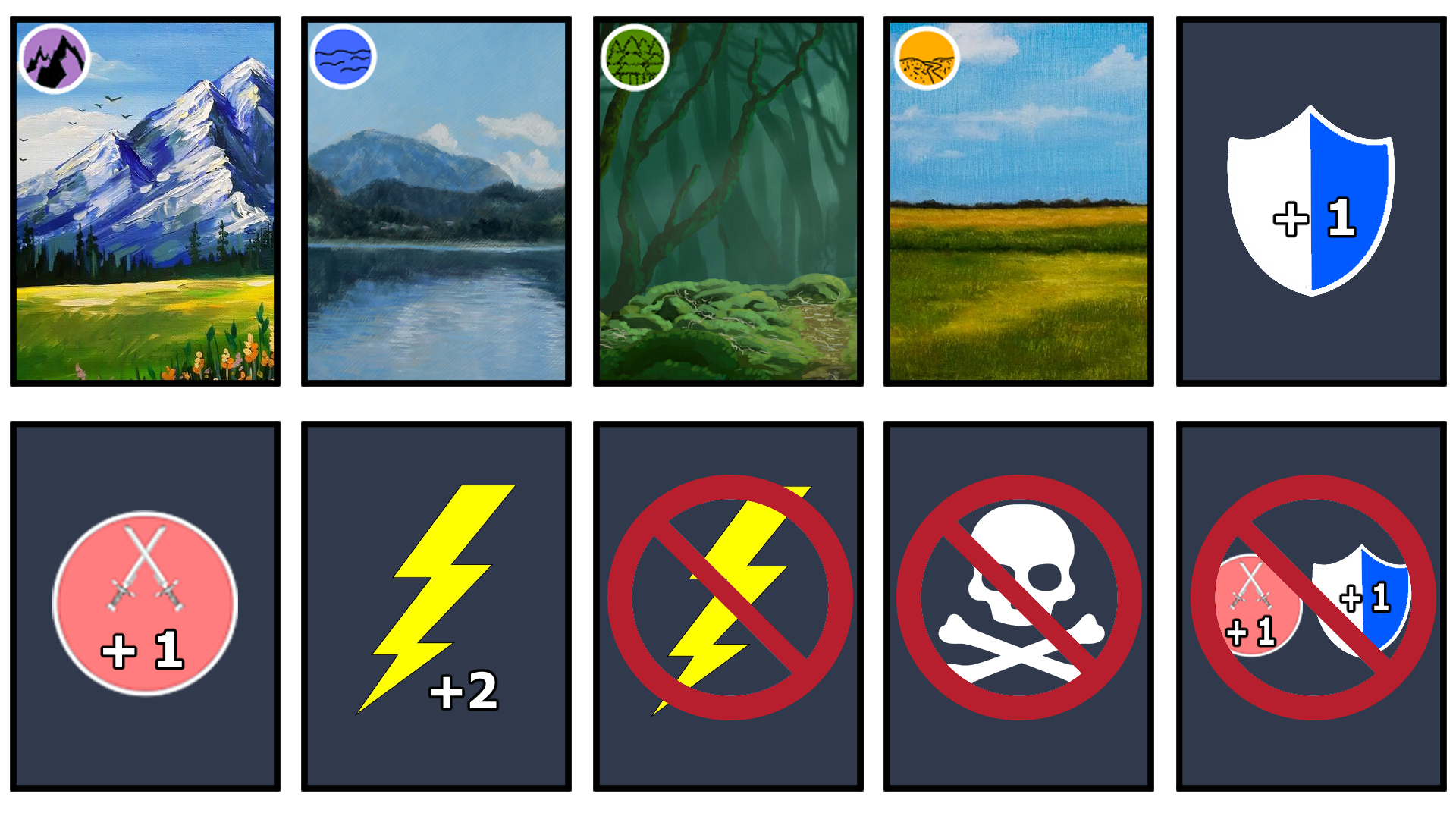 Au sein du projet, j’ai participé activement au game design, en travaillant sur les mécaniques, le déroulement des parties et l’équilibrage afin de rendre l’expérience agréable à jouer. J’ai également réalisé les illustrations, avec une attention particulière portée à la lisibilité des informations de jeux sur les cartes mais également à les rendre jolies pour imaginer un futur de cartes à collectionner.