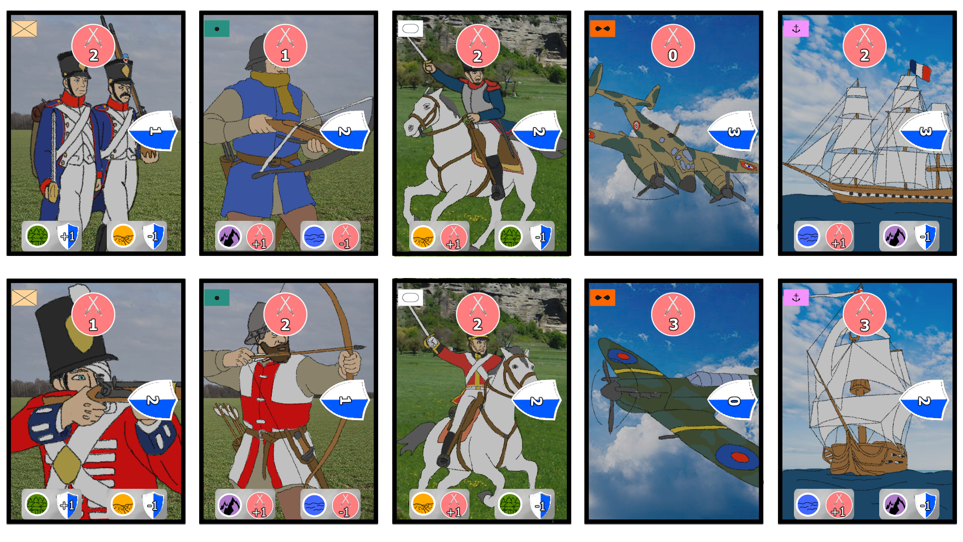 Nous avons choisi de concevoir un jeu de cartes, afin qu’il soit simple d’accès et facilement jouable en famille. L’utilisation de jetons permet d’améliorer la lisibilité du jeu, mais ceux-ci restent optionnels. Le jeu s’inscrit dans un cadre historique, avec l’idée, si le projet venait à se développer. De créer des cartes à collectionner représentant différentes nations et époques. Cette direction a naturellement été mise en avant grâce à mon parcours en histoire.